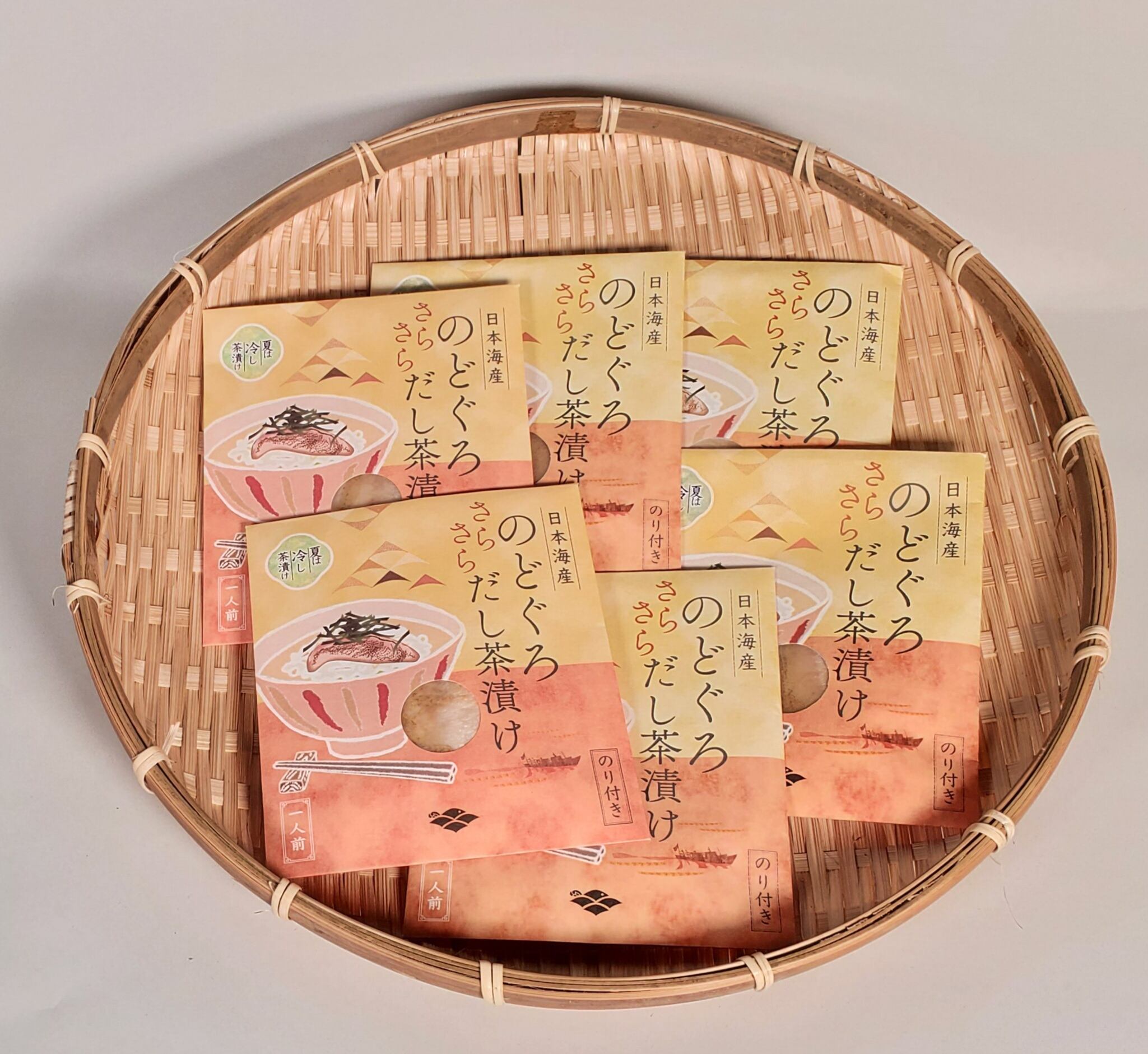 【茶漬けのダシ】食塩(国内製造)、粉末醤油、ぶどう糖、かつお節粉末、昆布粉末/調味料(アミノ酸等)、加工でん粉(一部に小麦・大豆を含む)