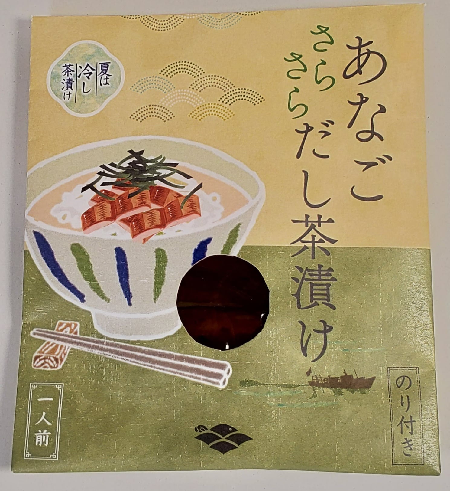 【茶漬けのダシ】食塩(国内製造)、粉末醤油、ぶどう糖、かつお節粉末、昆布粉末/調味料(アミノ酸等)、加工でん粉(一部に小麦・大豆を含む)